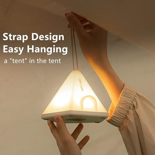 Portable Tent Night Light, with Lanyard for Easy Hanging, USB Rechargeable LED Desk Lamp with 6 Modes Adjustable, Camping Mini Nightlight, Bedroom Bedside Lamp with Timing Function