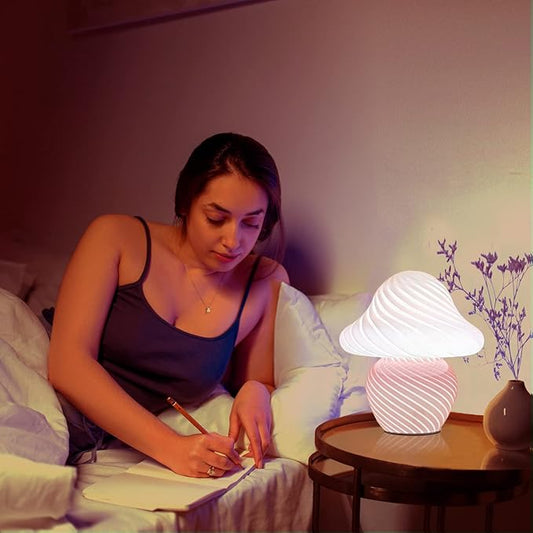 Mushroom Lamp, Small Pink Table Lamp with Striped Glass, Cute Little Swirl Nightstand Lamp for Bedroom, Bedside, Living Room, Gift for Girls Women Birthday Christmas Thanksgiving Day