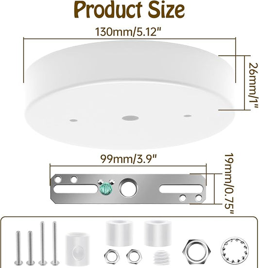Biaungdo 5 Inch Ceiling Lighting Canopy Kit, White Pendant Light Canopy Kit Metal Chandelier Ceiling Light Plate Cover with All Mounting Hardware for Chandelier Pendant Lighting Fixtures