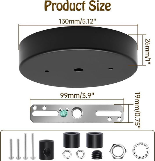 Biaungdo 5 Inch Ceiling Lighting Canopy Kit, Black Pendant Light Canopy Kit Metal Chandelier Ceiling Light Plate Cover with All Mounting Hardware for Chandelier Pendant Lighting Fixtures