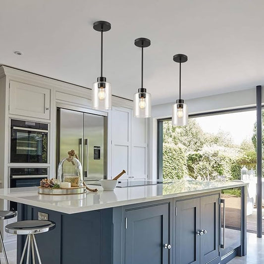 Black Pendant Lights Kitchen Island,Modern Design Clean Clear Farmhouse Glass Pendant Light,Light Fixture Kitchen Pendant Medium Hanging Light Fixture for Sink A60 Bulb Recommened