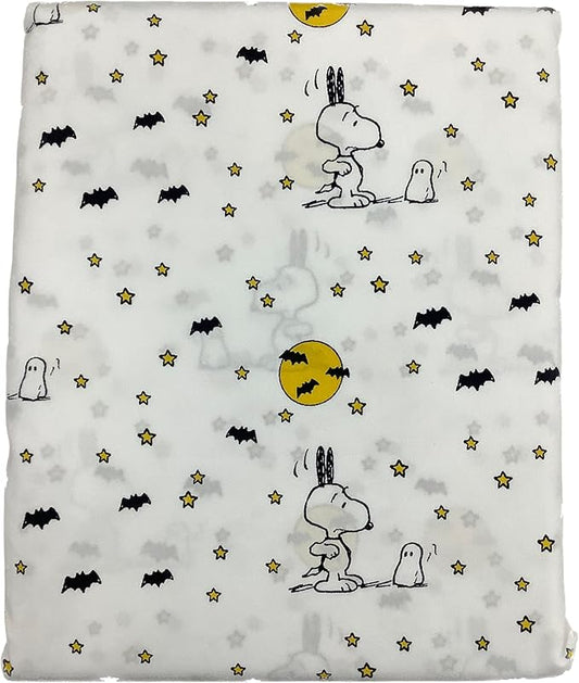 Berkshire Blanket & Home Co. Peanuts Halloween Fall Themed Sheet Sets (White - Bats, Stars, Ghosts, Full Moons, Twin)