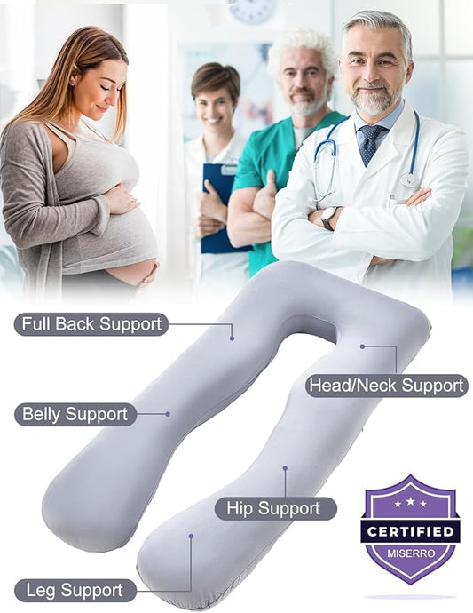 60 Inch Full Body Pregnancy Pillows for Sleeping Cooling Pregnancy Pillow,U Shaped Pregnancy Body Pillow,Maternity Pillows for Pregnant Women with Removable Washable Velvet Cover.(Grey)