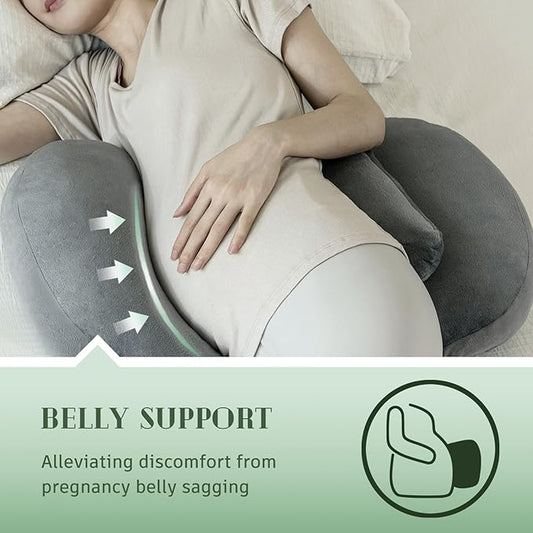 DOWNCOOL Pregnancy Pillow, Grey Maternity Pillow for Pregnant Women, Pregnancy Pillows for Sleeping with Removable Cover, Support for Back, Belly, Legs