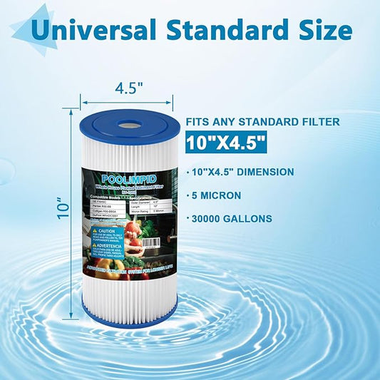 10" x 4.5" Whole House Water Filter, Compatible with GE FXHSC, GXWH40L, GXWH35F, Culligan R50-BBSA, American Plumber W50PEHD, W10-PR, 5 Micron, High Flow Sediment Filters,6 Pack