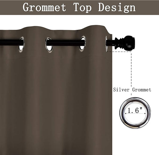Solid Grommet Top Brown Valance for Kitchen Windows Blackout Curtain Valance for Living Room Short Straight Drape Valance for Bedroom Kids Room/Cafe/Loft 42X18 1 Panel Coffee Brown