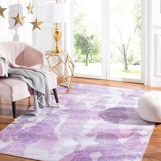 SAFAVIEH Disney Princess Collection Machine Washable Slip Resistant 2'3" x 3'9" Light Purple/Pink DSN507V Kids Bedroom Nursery Playroom Area Rug