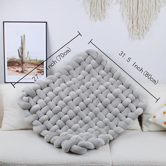XHJRI Thickened Braided Knot Seat Mat, Knotted Floor Decorative Cushion, Handmade Baby Infant Playing Pad Nursery Rug (27.5 * 31.5 Inch,Grey)