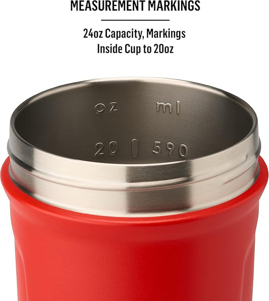 BlenderBottle Strada Shaker Cup Insulated Stainless Steel Water Bottle with Wire Whisk, 24-Ounce, Red
