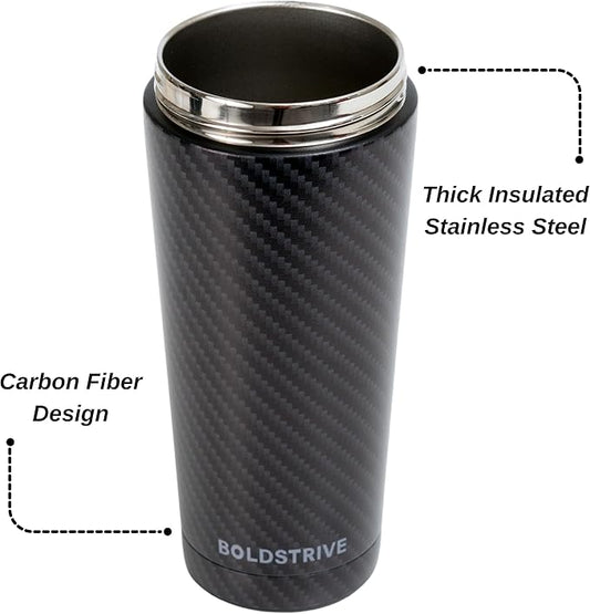 Black Carbon Fiber Stainless Steel Shaker Bottle For Protein - Gym Water Bottle & Mixer Bottle - 24 Oz, Internal Measure, Rubber Bottom, and Brush - Leak Proof & BPA Free Metal Blender Bottle