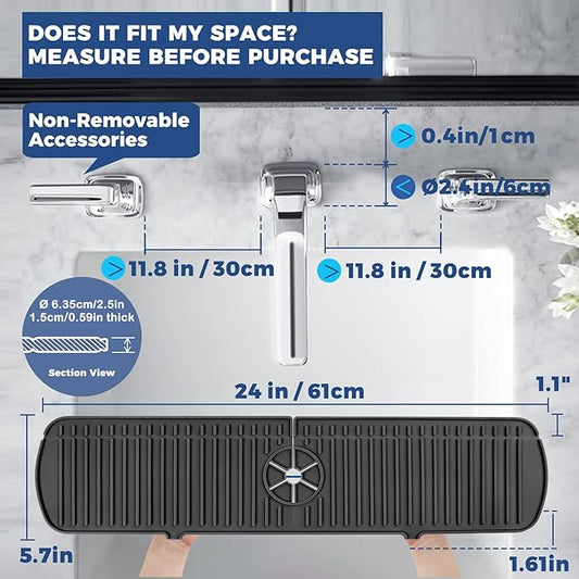 BFONS Silicone Faucet Handle Drip Catcher Tray, 24in x 5.55in, Black