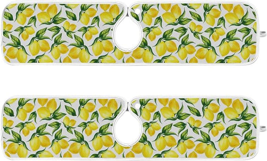 Kitchen Faucet Absorbent Mat,Lemon Fruit Summer Water Splash Guard for Sink, Faucet Drip Catcher Thicken Sponge Microfiber Faucet Water Catcher Mat Sink Absorbent Mat for Kitchen 30x5in 2 Pack