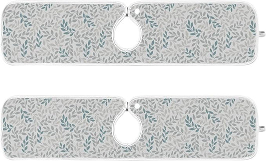 Kitchen Faucet Absorbent Mat,Green Gray Leaf Water Splash Guard for Sink, Faucet Drip Catcher Thicken Sponge Microfiber Faucet Water Catcher Mat Sink Absorbent Mat for Kitchen 23x5in 2 Pack