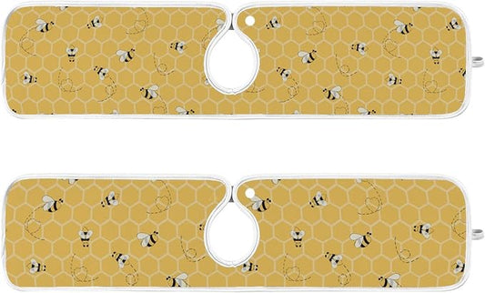 Kitchen Faucet Absorbent Mat,Bees Honey Honeycombs Water Splash Guard for Sink, Faucet Drip Catcher Thicken Sponge Microfiber Faucet Water Catcher Mat Sink Absorbent Mat for Kitchen 30x5in 2 Pack
