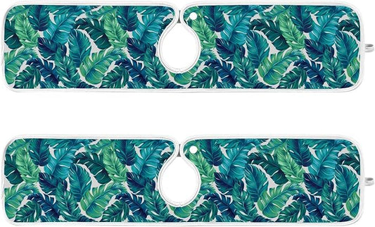 Kitchen Faucet Absorbent Mat,Turquoise Green Palm Leaves Water Splash Guard for Sink, Faucet Drip Catcher Thicken Sponge Microfiber Faucet Water Catcher Mat Sink Absorbent Mat for Kitchen 14x5in 2Pack