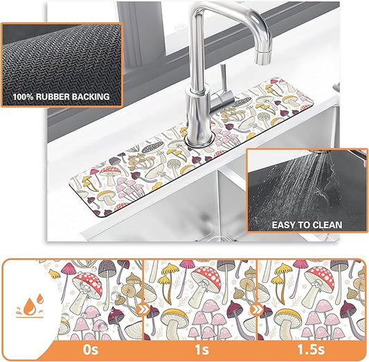 Kitchen Faucet Mat Magic Mushrooms Kitchen Sink Splash Guard Faucet Mat,1 PC Splash Guard Behind Faucet Drip Catcher for Kitchen,Sink Mat,Dish Drying Mat,Bathroom Faucet Mat 15.5""X5.5""