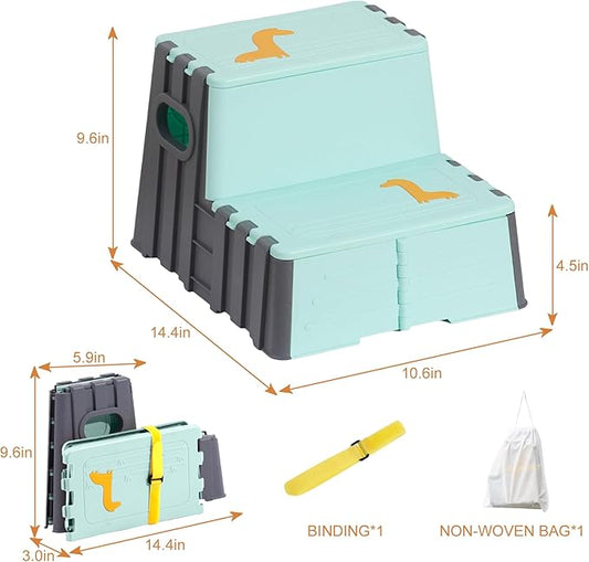 Toddler Step Stool,Anti-Slip Sturdy 2 Step Folding Stools for Kids for Bathroom Toilet Potty Training(Quiet Blue)