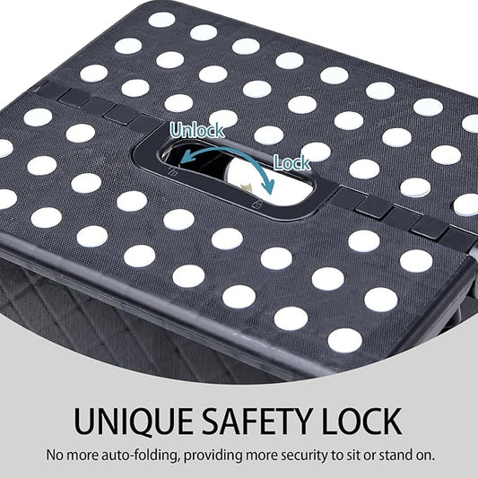 Folding Step Stool with Safety Lock, 11 Inch Pastic Foldable Stool for Adults & Kids, Portable Stepping Stool for Bathroom, Kitchen, with Anti-Skid Dots, Hold Up to 250lbs (Black, 11 Inch)