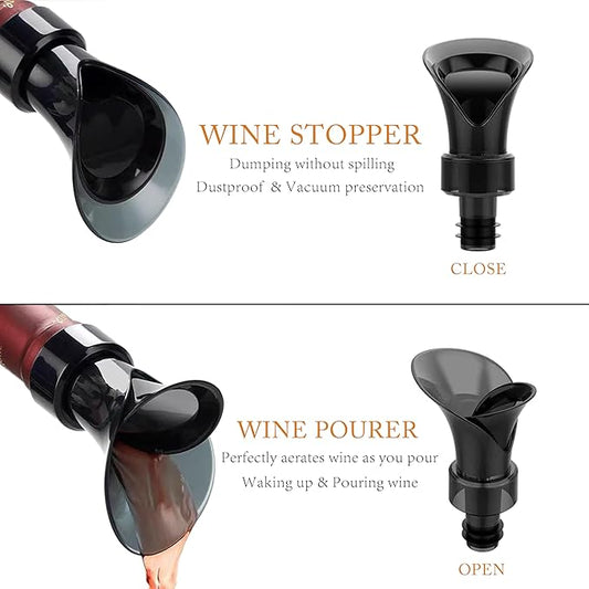 2 in 1 Wine Stopper Pourer, 2PCS Wine Accessories Bottle Corks Keeps Wine Fresh, No Drip No Spill - Perfect Fit for Every Wine Bottle