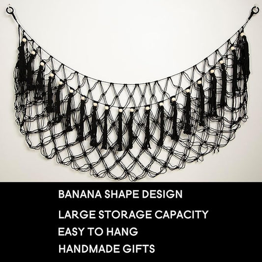 Large Stuffed Animal Net Hammock Macrame Toy Diaplay Plush Toy Holder Ceiling Hanging Net for Stuffed Animal Storage Kid Bedroom Boho Nursery Decor (Black, Small)