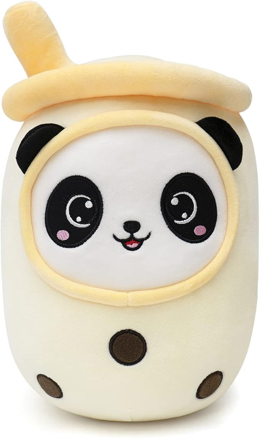 NiuniuDaddy Boba Plushies with Panda Face-13.7inches Large Yellow Cream Bubble Tea with Straw Stuffed Animals-Soft Kawaii Milk Tea Cup Plush Toy Pillow for Kids-Machine Washable,Medium