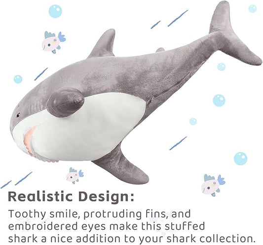 MorisMos Large Shark Stuffed Animal Cute, Giant Stuffed Shark Plush for Kids, 32in Big Stuffed Shark Toys for Birthday, Christmas, Gray