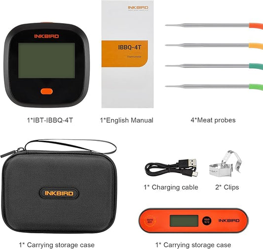 Inkbird WiFi Grill Thermometer IBBQ-4T & Instant Read Thermometer IHT-1P & Carrying Case, Meat Thermometer for Oven, Smoker, Cooking with Alarm Timer Graph, Rechargeable 4 Colorful Probes