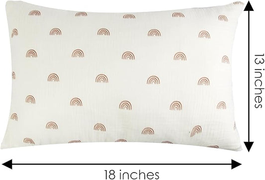 Organic Cotton Muslin Mini Pillowcases with Envelope Design,2 Pack Ultra Breathable Kids Toddler Pillowcases for Boys and Girls- 13 x 18 inches (Rainbow)