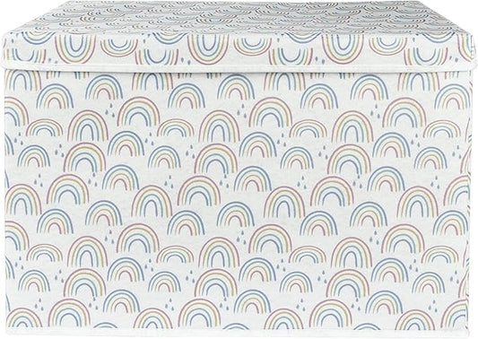 Sammy & Lou Painted Rainbow Felt Toy Box; Pink, Yellow, Teal, Blue, White; Collapsible; Two Handles; Hinged Lid; 22 in x 14.5 in x 15 in (Pack of 2)