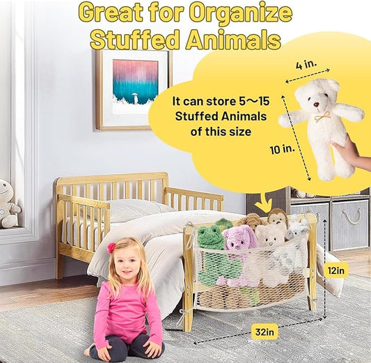 Stuffed Animal Storage Net for Kids, Bedside Toy Organizer Net - Neatly Store Your Stuffed Animals, Cotton Bedside Stuffed Animal Storage Net with Tether, Stretches up to 32 Inches, Beige
