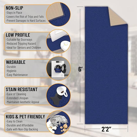 Machine Washable Modern Solid Design Non-Slip Rubberback 2x6 Traditional Runner Rug for Hallway, Kitchen, Bedroom, Living Room, 2'2" x 6', Navy