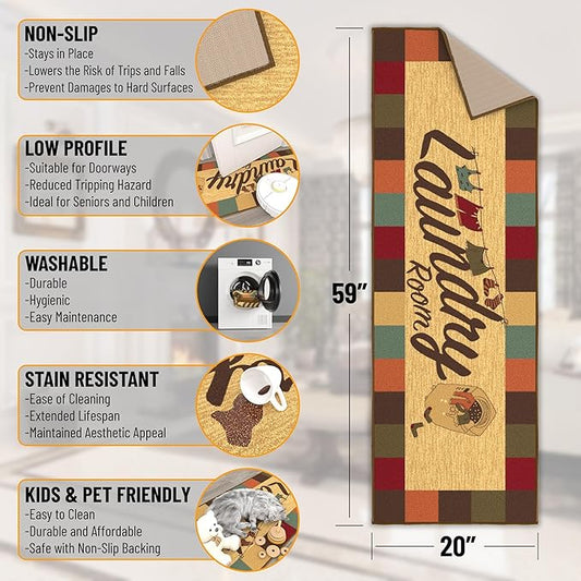 Ottomanson Laundry Collection Non-Slip Rubberback Checkered Border Design 2x5 Laundry Room Runner Rug, 20" x 59", Multicolor