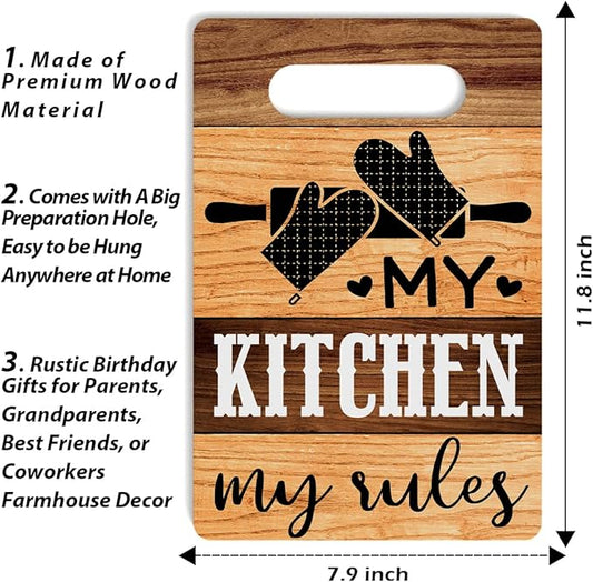 Farmhouse Kitchen Decor, Kitchen Signs Wall Decor, Wall Decor for Kitchen, My Kitchen My Rules Sign, Kitchen Decorations, Kitchen Door Wall Hanging Decor, Kitchen Gifts for Women 8 x 12 Inch