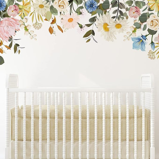 Zonon Flowers Wall Decals Vinyl Dragonflies Flowers Wall Stickers Removable Floral Wall Murals Peel and Stick Colorful Flower Wall Decor for Bedroom Living Room Nursery(Fresh)