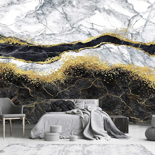 Black Gold Marble Wallpaper for Bedroom Background Decor (Not Peel and Stick)