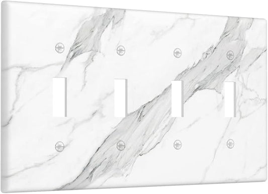 Marble Grey Wall Plate Decorative Light Switch Cover 4-Gang Quad Toggle Faceplate for Bathroom Farmhouse Kitchen Bedroom White