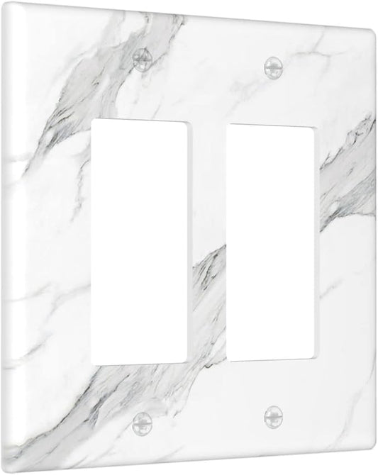 Marble Grey Wall Plate Decorative Light Switch Cover 2-Gang Double Rocker Faceplate for Bathroom Farmhouse Kitchen Bedroom White