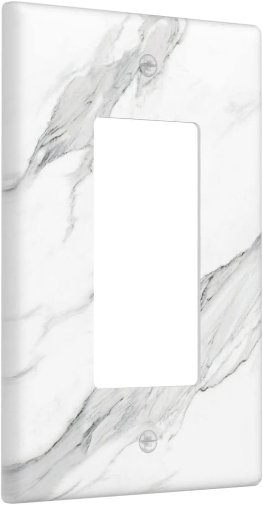 Marble Grey Wall Plate Decorative Light Switch Cover 1-Gang Single Rocker Faceplate fo Bathroom Farmhouser Kitchen Bedroom White