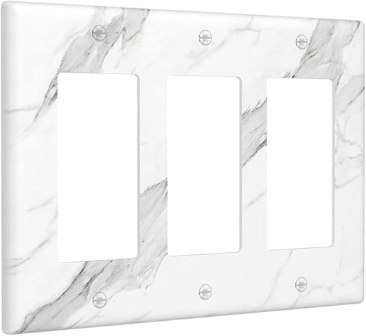Marble Grey Wall Plate Decorative Light Switch Cover 3-Gang Triple Rocker Faceplate for Bathroom Farmhouse Bedroom Kitchen White