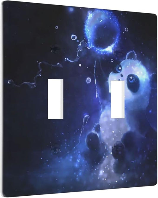 Cute Baby Panda Light Switch Cover Wall Plate Decorative 2 Gang Combination Toggle/Outle Covers Blue for Kitchens Farmhouses Duplex Electrical Receptacle Covers 4.5 x 4.6 in
