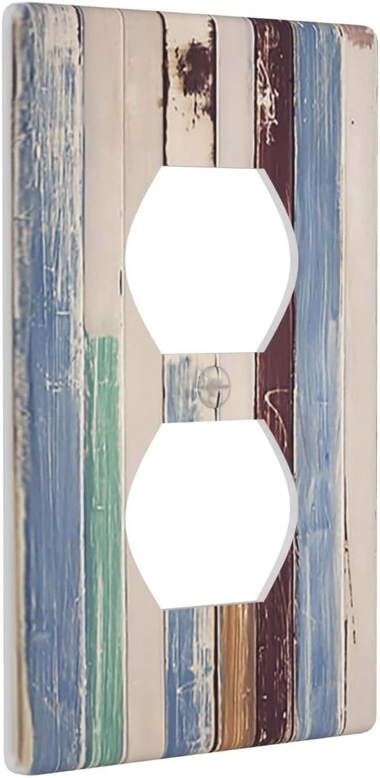 Vintage Wood Texture Farmhouse Decorative 1 Gang Duplex Outlet Cover Wall Plate Single Switch One for Electrical Kitchen Living Room Bedroom Bathroom Home Novelty Decorate