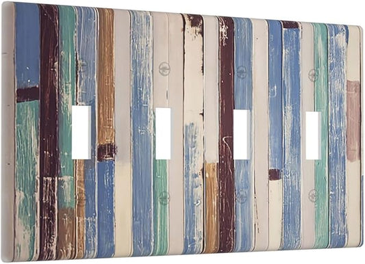 Vintage Wood Texture Farmhouse Decorative Light Switch Cover Wall Plate 4 Toggle Quad Four Gang for Kitchen Living Room Bedroom Bathroom Home Novelty Decorate