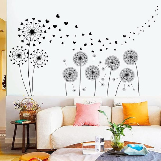 Cherry Blossom Tree Wall Decals, Butterfly Wall Stickers, Pink Flowers Wall Stickers, Removable Vinyl Wall Decor Mural Art for Baby Nursery Bedroom & Living Room Decoration (Zhai-Fly Dandelion 03)