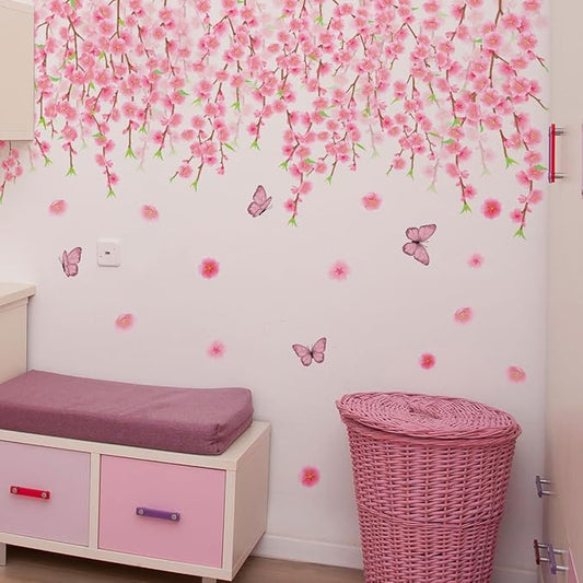 Pink Flower and Butterfly Wall Stickers - Elegant Home Decor