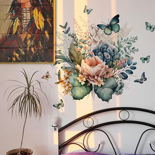 Vibrant Butterfly & Flower Wall Decals - 90cm x 30cm Sheet for Home, Office, & DIY Decor