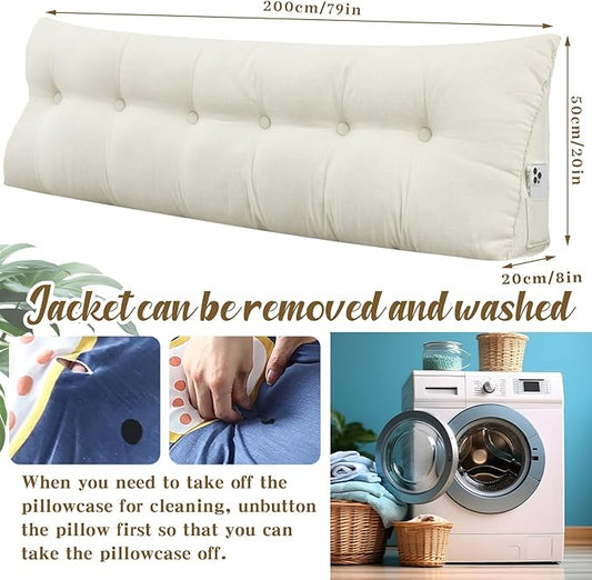Wenqik Wedge Pillow Triangular Dorm Headboard Bed Rest Reading Backrest Back Support Long Bolster Pillow with Removable Cover for Dorm Room Supplies(Beige,King (79 x 20 x 8 Inch))