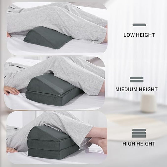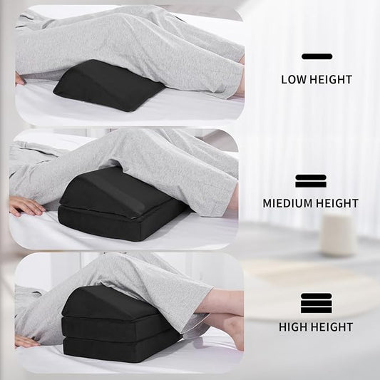 3PCS Bed Wedge Pillow Set - Memory Foam Adjustable 8&12'' Folding Triangle Pillow for Leg Knee Support Sleep Apnea Back Pain Relief Acid Reflux Snoring Sitting Up Rest Post Surgery Recovery