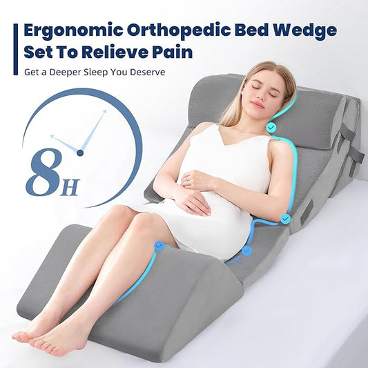 BDEUS 5pcs Orthopedic Bed Wedge Pillow Set, Memory Foam Wedge Pillow for Sleeping, Knee, Lumbar and Back Support Adjustable Bed Pillow, Deep Grey