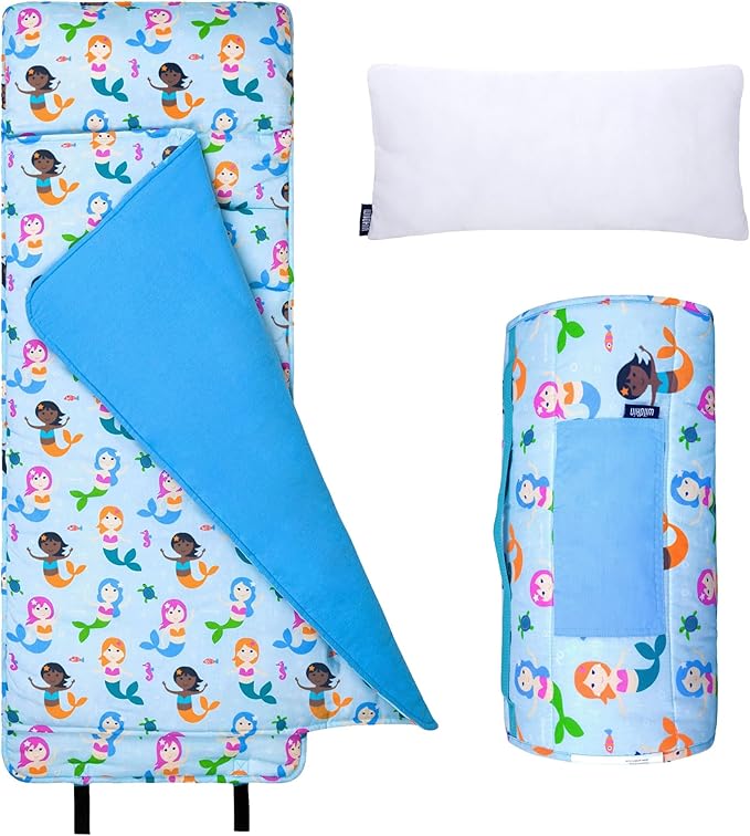 - TRAVEL-FRIENDLY DESIGN - Naptime can happen anywhere with Wildkin's daycare nap mat. Each travel-friendly design original kids napping mat features a roll-up design, complete with hook and loop fastening straps and a convenient carrying handle.