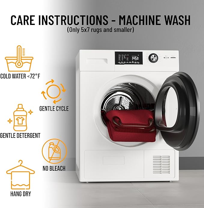 - [EASY CARE]: Vacuum regularly (no brushes/rollers) and gently spot cleaning out minor stains with mild detergent or carpet cleaner; Creases and curling should flatten with 5-7 days of regular use; Reverse roll the corner with the crease and gently apply pressure